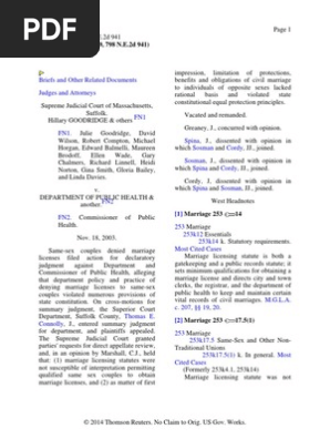 Goodridge V Department Of Public Health Pdf United States Constitution Marriage