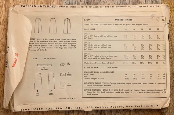 50s Simplicity 3330 Pencil Skirt Pattern Etsy